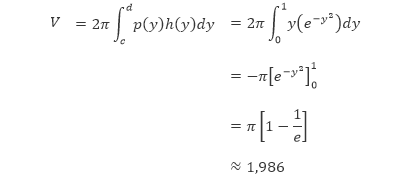 dari sketsa tersebut dapat ditentukan bahwa batas atas adalah 0 dan batas bawah adalah 1 maka volumenya adalah :